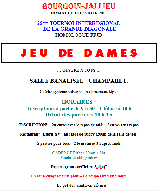 13 février 2011 - Tournoi de Bourgoin-Jallieu Pour tout renseignement complémentaire : contact par ce site