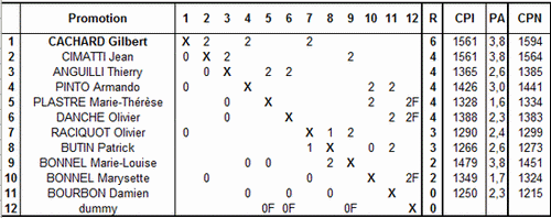 Organisé par Daniel Lanfrey (Pendules 20 min + 10 sec) - Système Suisse - Homologué FFJD