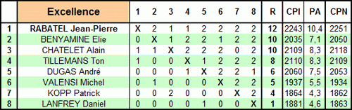 Championnat 2008 en parties blitz Organisé par Jean-Pierre Rabatel - Pendules 5 mn + 5 sec et 10 mn en Honneur Excellence Honneur Vainqueurs Le groupe des premiers Participants Les participants