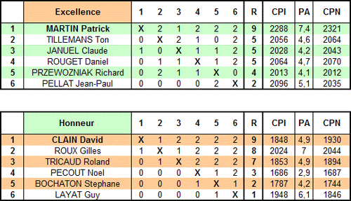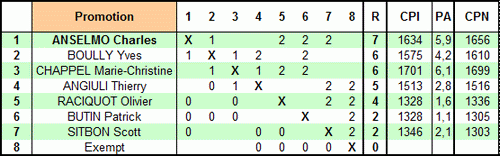 Championnat 2010 à cadence lente Organisé à Marcy l’étoile les 16/17 et 31 janvier par Richard Przewozniak (pendules 1h 20 + 1mn - Homologué FFJD Excellence - Honneur Promotion