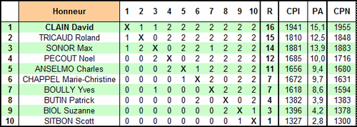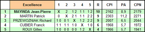 Championnat de Lyon 2010 Cadence 1h 20 + 20s Excellence Championnat Excellence disputé sur 2 tours1 partie Mayinda - Martin n’a pas été jouée Honneur