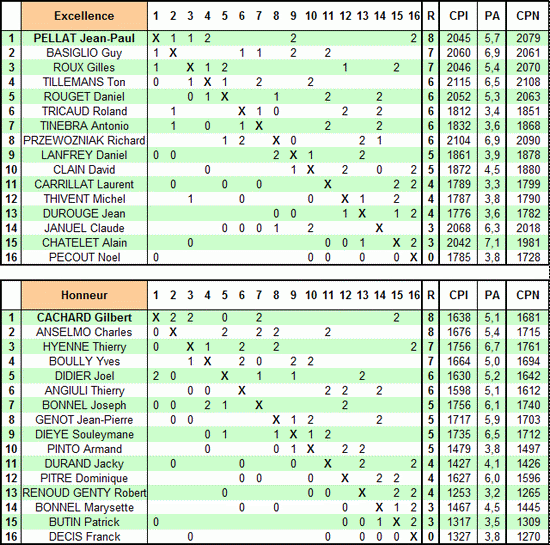 Championnat semi-rapide 2012 Organisé à Bourgoin-Jallieu le 6 novembre 2011 par la Grande Diagonale (pendules 20 mn+10s) - Homologué FFJD