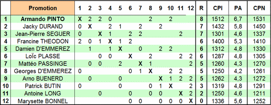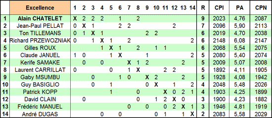Championnat semi-rapide 2014 Organisé à Bourgoin-Jallieu le 10 novembre 2013 par la Grande Diagonale (pendules 20 mn+10s) - Homologué FFJD
