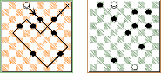 - Comme le pion, elle doit prendre du côté du plus grand nombre de pièces. Elle se déplace dans tous les sens.