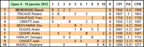 Open 4 2011/2012 du 14 janvier 2012 - Cadence 20mn + 10s