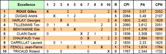 Open 5, 6 et 7 2012/2013 de Villeurbanne Open 5 2011/2012 du 9 février 2013 - Cadence 20mn + 10s Open 6 2011/2012 du 10 mars 2013 - Cadence 20mn + 10s Open 7 2011/2012 du 13 avril 2013 - Cadence 20mn + 10s