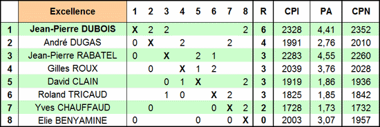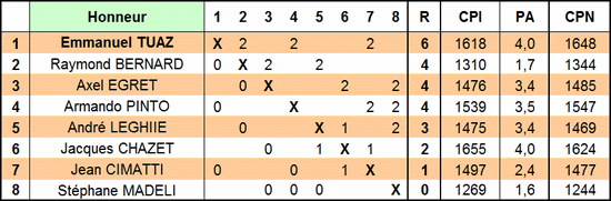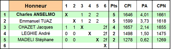 Open 5, 6 et 7 de Villeurbanne Open 5 2014/2015 du 14 février 2015 - Cadence 20mn+10s Open 6 2014/2015 du 14 mars 2015 - Cadence 20mn+10s Open 7 2014/2015 du 11 avril 2015 - Cadence 20mn+10s