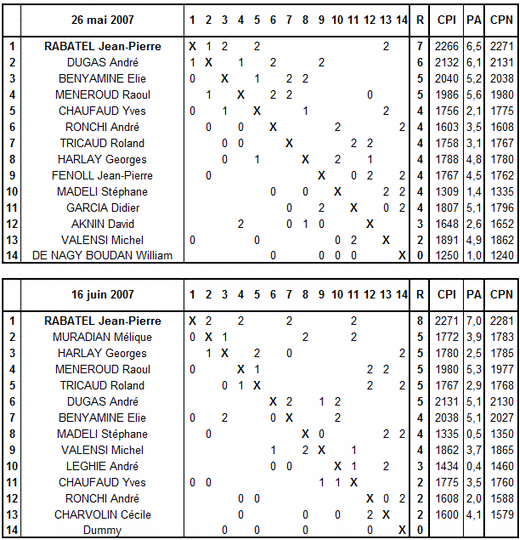 Open de Villeurbanne 26 mai et 16 juin 2007 Cadence 20 mn + 10s – Pour les tournois précédents voirle site du club