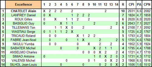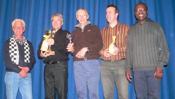 De G à D Gilbert Cachard, Président, les 3 premiers d’excellence : Alain Chatelet, Daniel Lanfrey, Gilles Roux et Yumba Nkulu animateur.