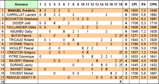 Nota : les parties gagnées par forfait ne comptent pas dans les calculs PA et CPN.